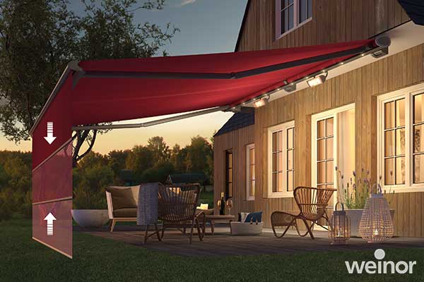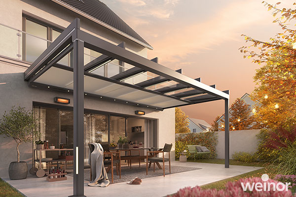 Das Infrarot-Heizsystem TEMPURA sorgt auf Knopfdruck für angenehme Wohlfühltemperatur. Eine integrierte LED-Beleuchtung für Terrassendach und Markise schafft in den Abendstunden ein stimmungsvolles Ambiente. Alle Funktionen lassen sich bequem per Funk-Fernsteuerung steuern.