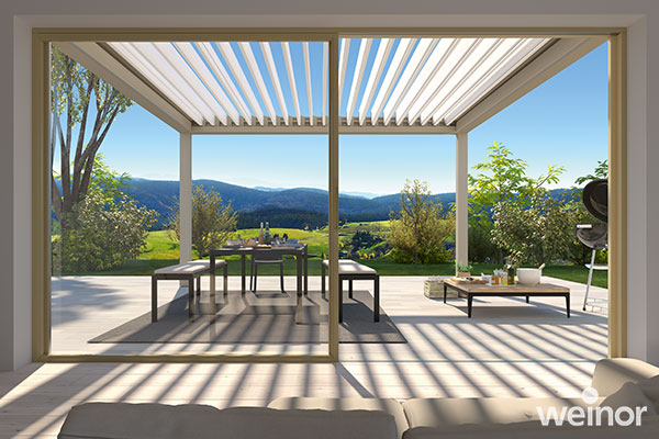 Mit dem Lamellendach ARTARES können Sie auf jede Wetterlage ganz flexibel reagieren. Dosieren Sie Licht und Schatten ganz nach Belieben mit Hilfe der drehbar gelagerten Lamellen. Setzt Regen ein, schließen Sie das Dach. Ihr Lieblingsplatz im Freien bleibt trocken. Fassadengebunden oder freistehend realisierbar.